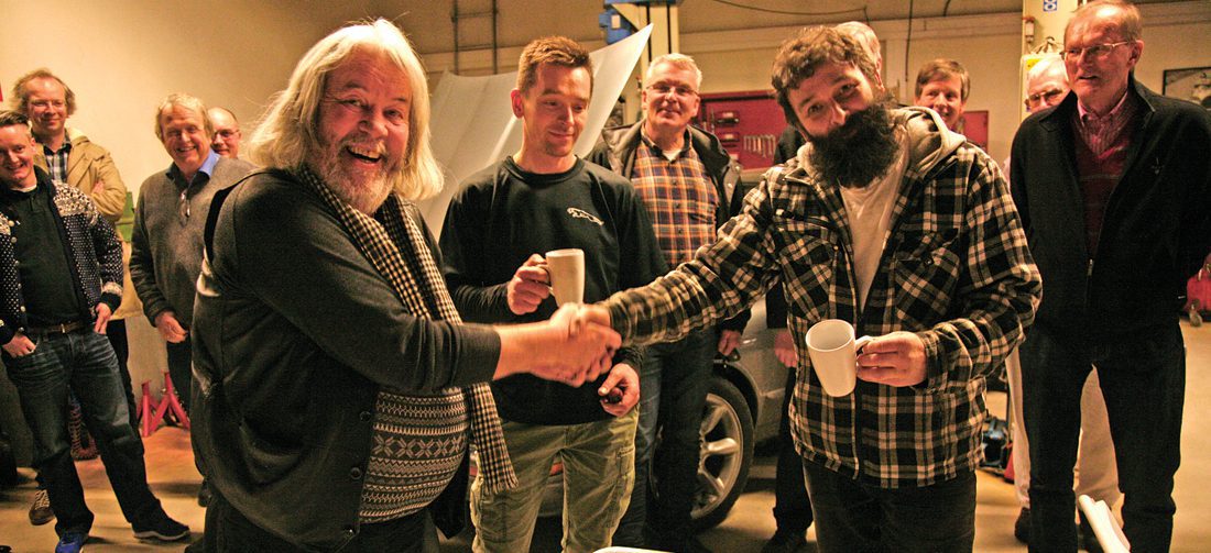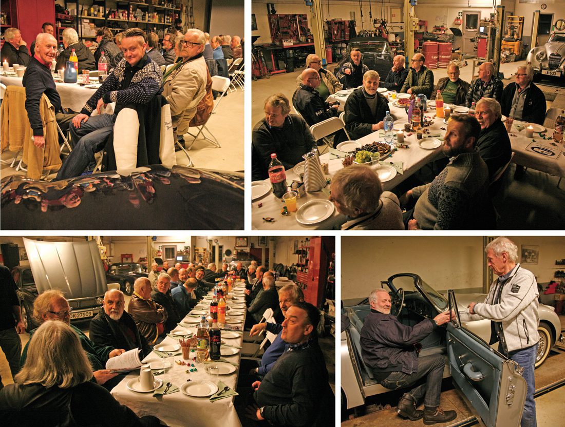Sett opp et langbord, åpne dørene og la alle vitebegjærlige NJK-medlemmer spørre om løst og fast – eller mingle og mimre med hverande. Verksted er gøy – stemningen høy. Formelen virker! Det var selvsagten stor fordel at det sto en sølvgrå XK 150 på en bukk i hjørnet, den ble raskt gjenstand for undersøkelser. En mørk blå E-type Serie 3 Convertible pyntet også opp i lokalet, den er satt i stand hos Sandberg Auto. Pluss en nyere XJ med panseret oppe. Det er sånt vi trives med. Og det utløser alltid en masse samtale. Da blir medlemsmøtet en slags «perpetum mobile» som bare går og går helt av seg selv. Jørgen og hans tekniske besetning fikk overrakt Jaguar-krus som takk for en fin kveld.