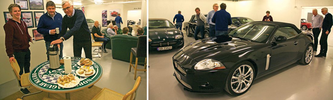 Vi hadde en behagelig tur i min XJ40 oppover den nye motorveien til Hamar, og fikk et skikkelig ‘hakaslepp’ da vi ble vist inn i det nye klubblokalet. Her var det lyst og trivelig, og flott dekorert og møblert. At flere spreke Jaguarer, mest XKR og XK8, sto og skrapte med klørne i lokalet la heller ingen demper på stemningen.