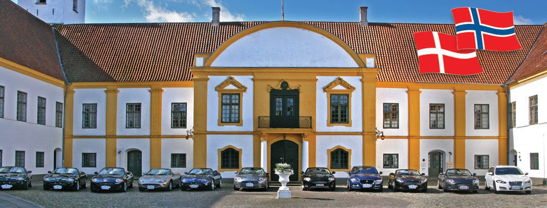 Torsdag, bittelille pinseaften, var kaiområdet til Stena Line i Oslo betraktelig oppgradert. Ti Jaguarer, flest kabrioleter av type XK8 og XKR, et par «vanlige» Jaguarer og vi som får henge med i vår Aston Martin DB9. Bare man er kritisk og kjører britisk, er vi kvalifisert et flott Jyllandrally-skilt foran på grillen. På Stena tok det sin tid å komme ombord. Med borti hundre motorsykler som måtte sikres, gikk tiden. Heldigvis skulle et reise-følge med flere flotte MG på samme båt, det gjorde ventetiden litt lettere. Vi startet godt etter estimert avgang. Det var vel mest rumlingen i magen som led under dette. Vi hadde selvfølgelig også i år fått utdelt detaljert reisebeskrivelse, inkludert meny på flere spisesteder. Stena Lines’ grillrestaurant, «The Steakhouse», stod ikke klare med bordplasseringen som vi skriftlig kunne vise for oss. Roger hadde med ulike bekreftelser, klok av skade. Også her tok det sin tid å få oss på plass. Men maten var grei nok, og øl og vin smaker jo alltid. Etter en smul overfart, kom vi frem til Frederikshavn, grei temperatur for åpen bil, men overskyet. Frokosten spiste vi en liten kjøretur sydover E45, på Wilmas Cafeteria. En ordentlig rosa frokostbuffet, «american look», ganske standard dansk mat. Jylland er lite, og setter vi klampen i bånn på våre sterke motorer, er vi plutselig i Tysk-land. Så her gjaldt det å kjøre utenom alfarvei og nærmest mulig kysten til vi kom til Hals. Her ligger det sjarmerende fergeselskapet, Hals-Egense færgen. Nettstedet deres skriver følgende: «Vi sejler dagen lang, alt etter behov. Vi står klar til å hjelpe deg over Limfjorden». Slike skriverier vitner om service og hjelpsomhet. Vi fikk ikke hele kortesjen med på første overfart, fergen rommer 12 biler. Noen andre var allerede om bord. Men seil-asen er kort, og snart var alle samlet igjen. Antagelig har det neppe vært mer dyrebar last. Det er stas å kanskje være en del av dagens snakkis hos de fergeansvarlige.