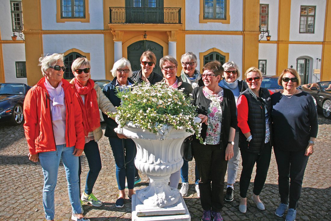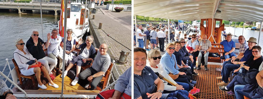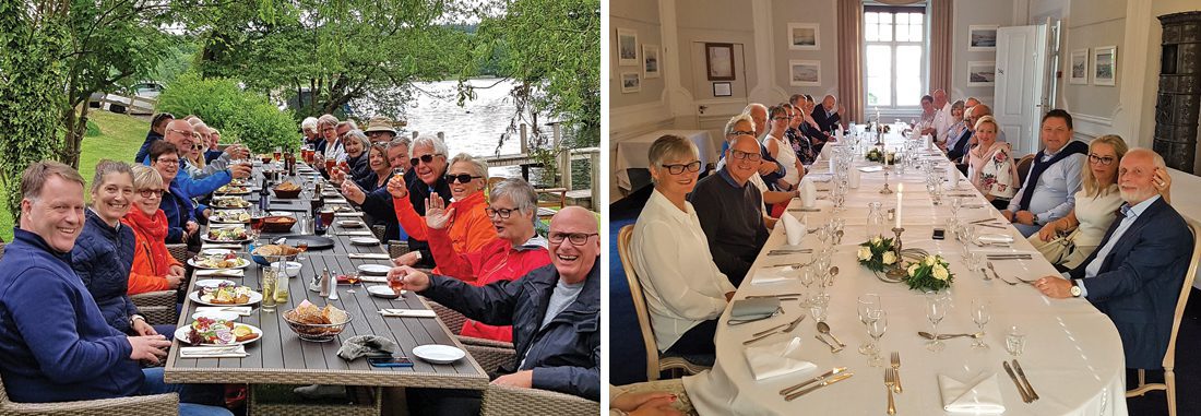 Vår bil tok Stena Line fra Frederikshavn til Gøteborg. Det var uanstrengt ombordkjøring og bekvem overfart tross mye folk. Finner man en sofa, er det mulig å lukke øynene. Barene serverer helt ok lunsjretter. Resten av følget tok Color Line fra Hirtshals til Larvik. De er alltid raske og effektive på ombordkjøring. Å forhåndsbestille bordplassering til lunsj, var positivt for dem som hadde gjort det. En fantastisk buffet med all drikke inkludert, skuffet ikke. Ellers er det også her brukbare sitteplasser i barområdene akter om en bare vil ha en baguett og en god kaffe. Er du veldig trett, kan sove-seter bestilles. Jeg får nok alle med meg i vår takknemlighet overfor Trond og Roger. God planlegging er alfa og omega. Vår reisemappe manglet intet. Det var detaljkart over dagens distanser, beskrivelser av alt som skulle besøkes og store oversiktskart med inntegnede dagsruter. Sistnevnte er hyggeligere å følge med på enn GPS. Men aller viktigst har de dokumentasjon på de bestillingene som er gjort på forhånd. Vi er en samkjørt og trivelig gjeng som allerede gleder oss til neste år. • Reportasje: Tone Walberg.