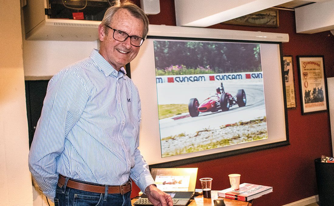 Morten Larsen presenterte både seg selv og sin alltid tilstedeværende bilinteresse, som han påsto var en miljøskade fra barndommen – sannsynligvis påført av hans far. Morten har i mange år samlet stoff om Eugen Bjørnstad, den norske fartskongen som allerede på 1930-tallet reiste fra løp til løp og vant mange premier. Nå er den eventyrlige historien blitt til en 350 siders bok, spekket med historiske fotografier. En stor leseopplevelse for alle som interesserer seg for norsk bilsport. Morten presenterte boka og historien på Tyrigrava med et fullspekket bilde- og videoshow.