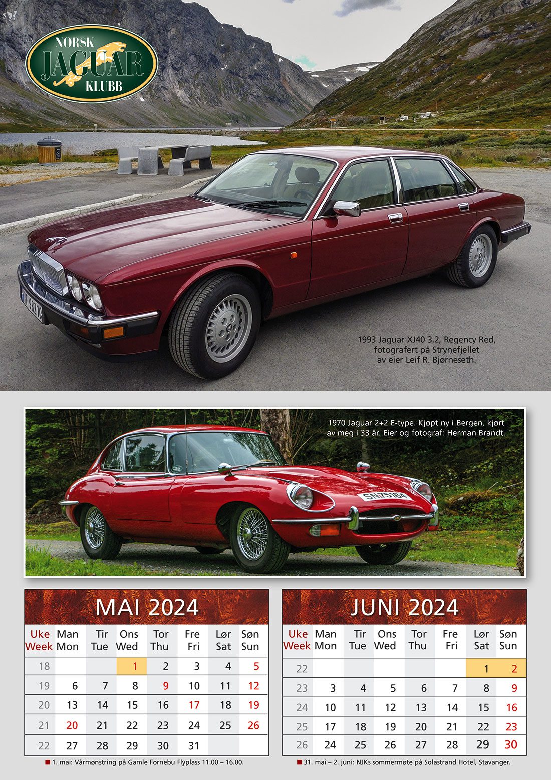 Kalenderen for 2024 er sendt ut og henger nyåpnet i over 1.300 Jaguar-hjem, leverandører og verksteder landet rundt. Kalenderen bidrar til å gjøre klubben kjent og skaffe nye medlemmer. Husk å ta bilder av Jaguaren din gjennom 2024-sesongen, så vi får en fin kalender også for 2025 når den tid kommer! Vi ønsker oss gode bilmotiver i fine omgivelser gjennom alle årstidene! Her er informasjon om hvordan du sender inn dine bidrag: