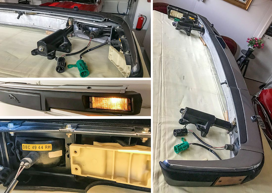 Komplett front støtfanger med sidefangere, aluminiums bjelke med støtdempere ( tror de var på USA bilene ). Alle delene er ubrukte. Flere av dem er ikke å få kjøpt som nye reservedeler lenger. (SNG Barratt.) Selges komplett. (Pris fra SNG Barratt vil være 30 – 35.000,– + mva og frakt).