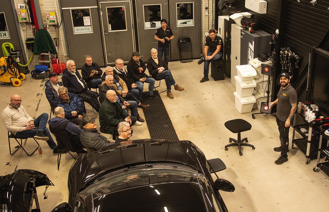 Norsk Jaguarklubb avdeling Oslo & Omegn hadde klubbmøte onsdag 13. mars hos Insanity Detailing. Der fikk vi en innføring i «detailing» av ypperste klasse, mest konsentrert om lakk, rensing og renhold, polering, lakkforsegling, foliering osv. Vi fikk også blikk inn i aktuelle produkter og metoder i prosessen. Bra inspirasjon nå som vi står overfor vårpussen av våre Jaguarer! Hos dette firmaet kan du også få byttet taktrekk som henger på Jaguars X-300 serie. Les mer i Jaguaren 2-2014 som nylig kom ut.