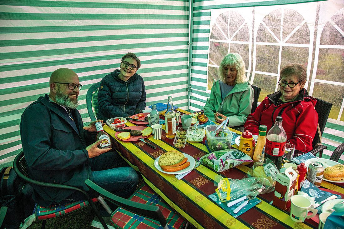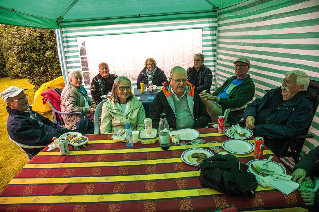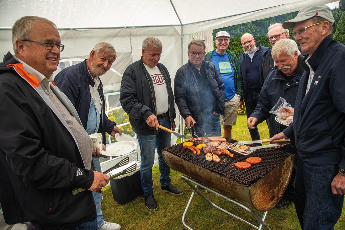 Etter besøket hos EAC tente vi opp grillen hjemme hos familien Sæle, med fine telt slått opp for regnværet. Mer om denne fine dagen kan du lese i jaguaren 34-2023 som kommer ut medio oktober.