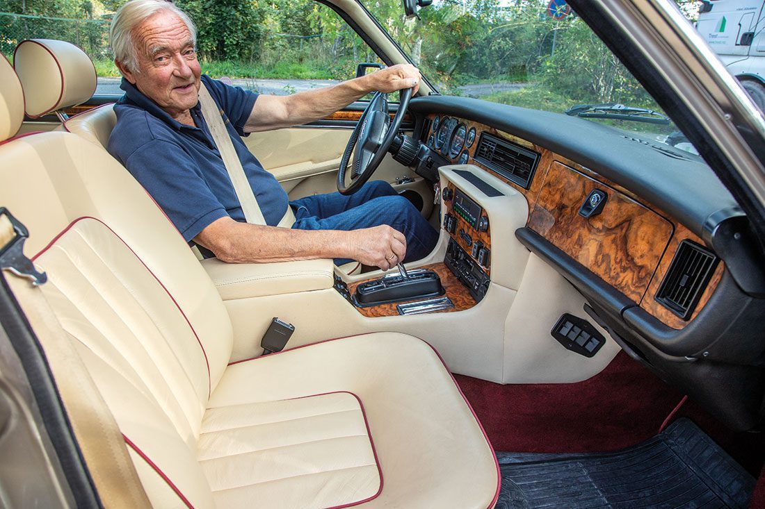 Knut Chr Hallan bak rattet i sin Serie 3 Daimler Double Six.