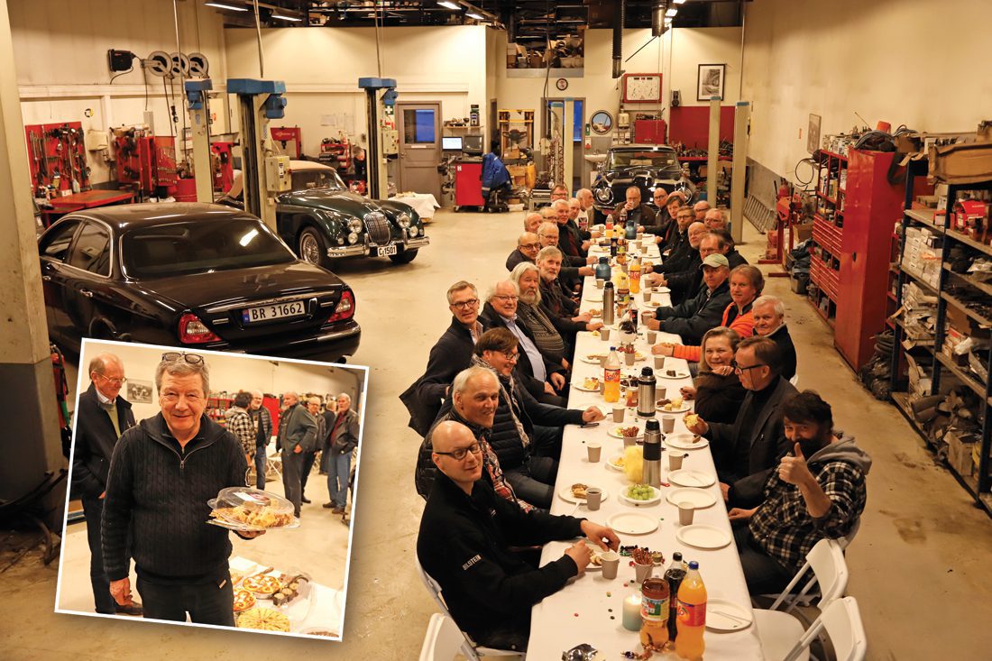 Onsdag 14. mars var vi invitert til «Åpent hus» hos Sandberg i Sandvika. Ekte verkstedstemning med herlig duft av spillolje, CRC, viftereimer og bremsevæske. Oppimot 40 medlemmer møtte opp til en hyggelig kveld. Jørgen var som vanlig åpen for rare spørsmål og all slags bilprat, han er jo et levende Jaguar-leksikon av den praktiske typen. Hele reportasjen om klubbkvelden blir publisert i Jaguaren 2–2018 i mai. (Obs: Publiseringsdato er kanskje litt forvirrende, den er bare satt inn for å plassere dette innlegget inn i riktig rekkefølge på vår hjemmeside). • Reportasje: Åsmund Lindal.